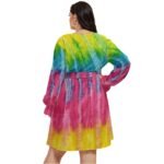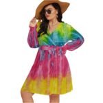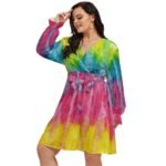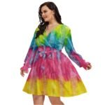 Color POP – All-Over Print Women’s V-neck Dress With Waistband (Plus Size)
