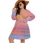 Fiber Flow – All-Over Print Women’s V-neck Dress With Waistband (Plus Size)