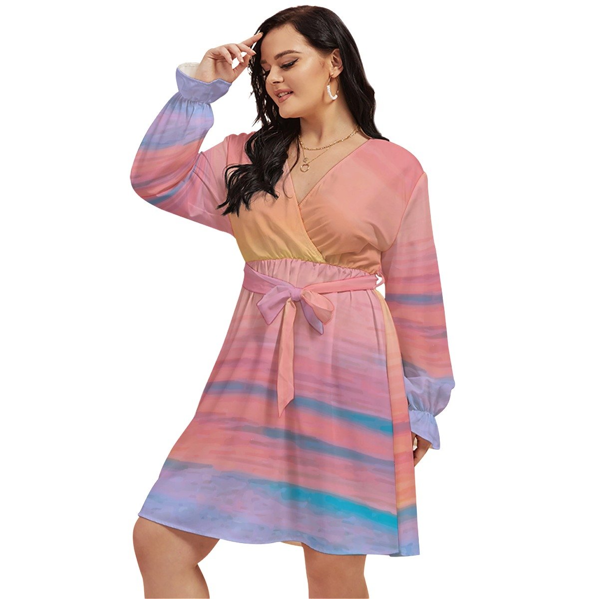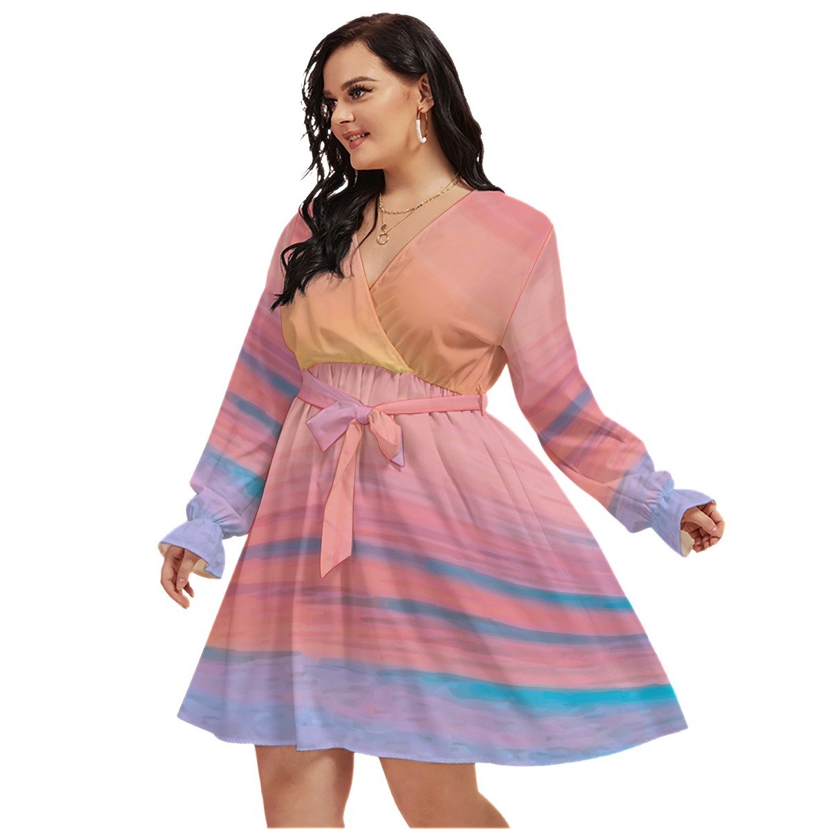 Order your All-Over Print Women’s V-neck Dress With Waistband (Plus Size) today!