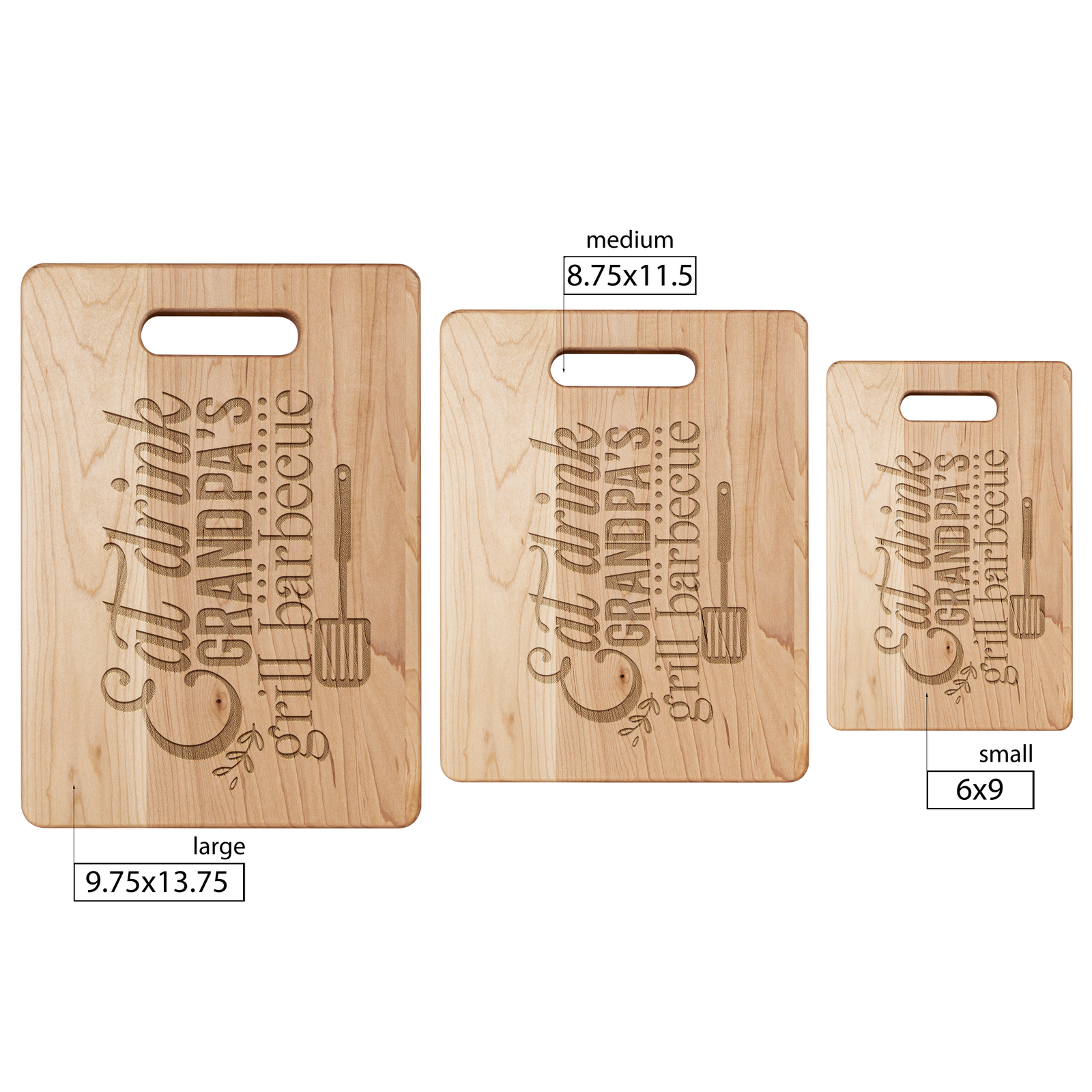 Our maple cutting boards are absolutely stunning. Hand-crafted from solid maple and laser engraved, these cutting boards will be the show-piece of your kitchen. They are also perfect gifts for any time of the year. Maple is a fantastic wood for cutting boards. It is very durable, and will last for years to come. One side of the cutting board is personalized for display and the other side is used for food preparation. Available in three sizes. Made in the USA